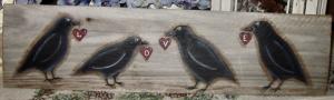 *~*PRIMITIVE*~* HP FOLK ART PRIM CROW *~* HEARTS *~* LOVE *~* OLD RECLAIMED WOOD