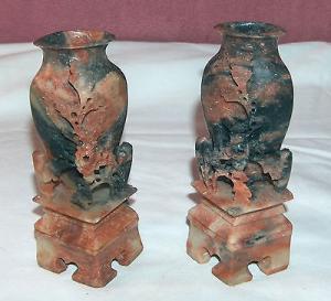 RARE ANTIQUE PAIR OF CHINESE SOAPSTONE CARVINGS - VASES