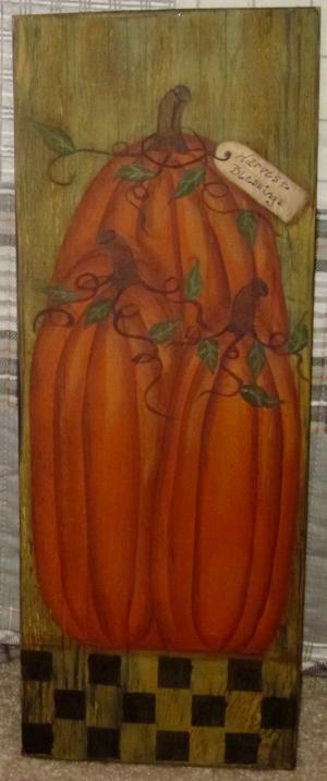 *~*PRIMITIVE*~* HP FOLK ART PRIM PUMPKIN TRIO * HARVEST BLESSINGS *~* BOARD