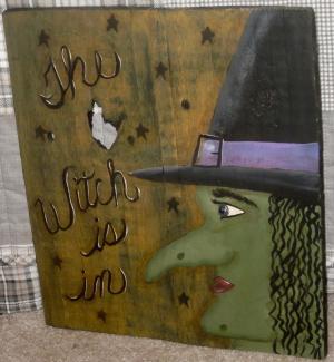 *~*PRIMITIVE*~* HP FOLK ART PRIM "THE WITCH IS IN" * HALLOWEEN * RECLAIMED WOOD