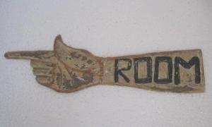 VINTAGE OLD HAND DIRECTION DISPLAY SIGN " ROOMS " . EMBOSSED