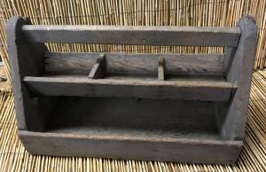 Primitive Antique Old Paint Divided Wood Tote Wooden Tool Box w/Handle