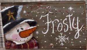 *~*PRIMITIVE*~* HP FOLK ART PRIM SNOWMAN *~* FROSTY *~* OLD RECLAIMED WOOD