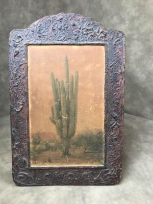 ANTIQUE PICTURE--GIANT CACTUS TREE--COWBOY--WOODEN