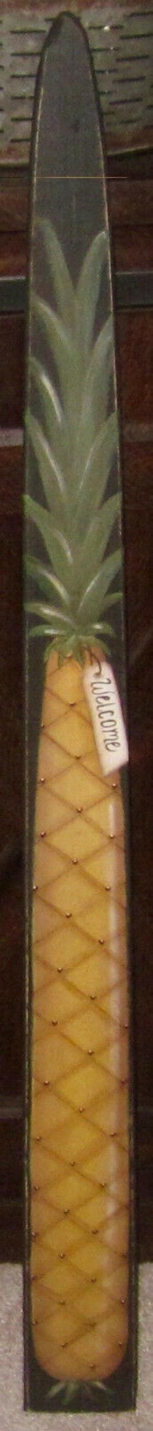 *~*PRIMITIVE*~* HP FOLK ART PINEAPPLE *~* WELCOME *~* 36" ANTIQUE MINK STRETCHER