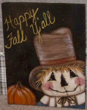 *~*PRIMITIVE*~* HP FOLK ART PRIM SCARECROW *~* PUMPKIN *~* FALL *~* BOARD