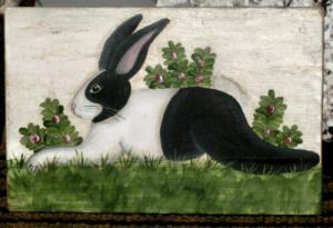 *~*PRIMITIVE*~* HP FOLK ART PRIM BLACK & WHITE BUNNY *~* RECLAIMED WOOD