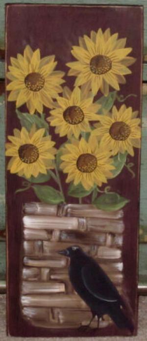 *~*PRIMITIVE*~* HP FOLK ART PRIM SUNFLOWERS *~* CROW *~* FALL *~* BOARD