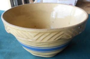 Vintage Stoneware USA 104 # Pottery Yellow Ware Blue Striped Mixing Bowl