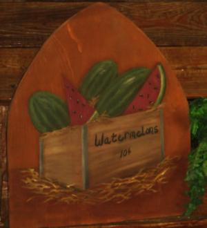 *~*PRIMITIVE*~* HP FOLK ART CRATE OF WATERMELONS ~ LARGE STRETCHER