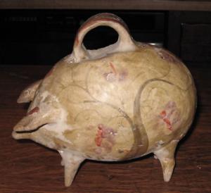 VINTAGE ANTIQUE FOLK ART POTTERY PIG PIGGY BANK OLD PAINT DECORATION