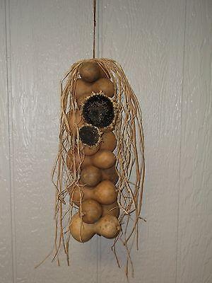 Primitive 21" Long Dried Gourd & Sunflower Cluster Garland Country, Cabin, Decor