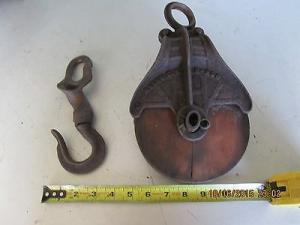 Cast Iron & Wood Meyers O K H299 H298 Barn Hay Pulley Vintage Farm Tool