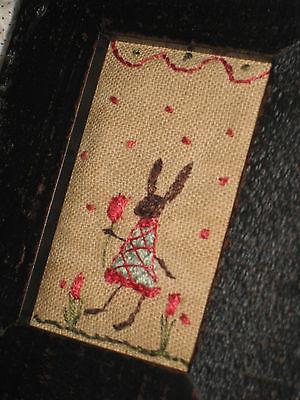 Primitive tiny Sampler *Folky Little Rabbit & Flowers* Folk Art Needlework OOAK