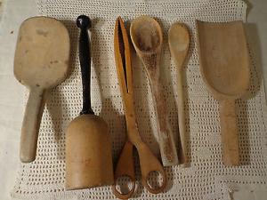 Antique Vintage Primitive Farmhouse Country Wood Wooden Spoons Utensils Lot