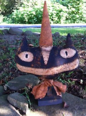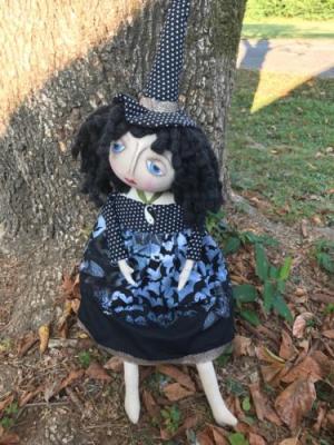 Primitive Folk Art black cat Halloween make do doll makedo Fall grungy