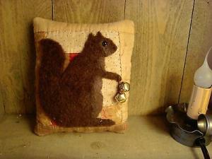 OLD QUILT SQUIRREL DOOR OR CUPBOARD PILLOW ~ ORIGINAL FOLK ART