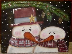 *~*PRIMITIVE*~*HP FOLK ART PRIM SNOWMEN COUPLE * GREENS * OLD RECLAIMED WOOD