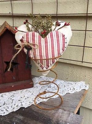 HEART VALENTINE - Primitive Quilt Nodder - Make Do - Rusty Spring - Sitter