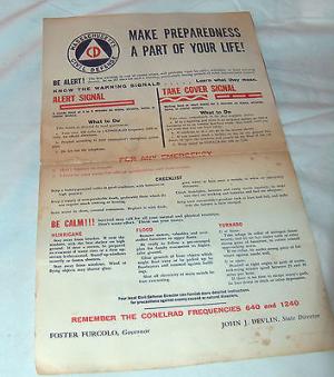 VINTAGE MASSACHUSETTS CIVIL DEFENSE WARNING POSTER - CIRCA 1960''S