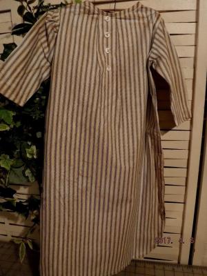 Primitive pioneer old time night shirt dark blue ticking stripe tea stained