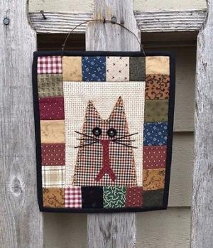QUILT - CAT - Primitive Mini Quilt - Folk Art Peg Hanger - Country Decor