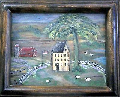 Primitive Folk Art Hand Painted SaltBox Red Barn Silo Sheep Country Farm Decor