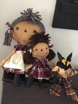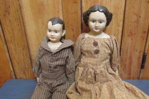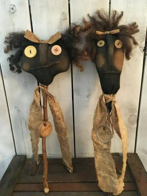Two Reproduction Dolls, Country, Farm House, Primitive, Cabin, Colonial