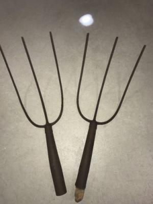 (2) PRIMITIVE ANTIQUE 3 TINE HAY PITCH FORK HEAD, FARM TOOL, PITCHFORK