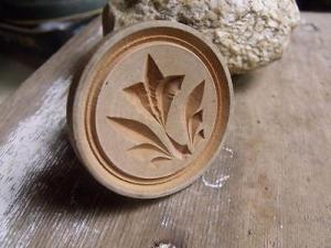 Small Primitive Antique Turned Wood Hand Carved Butter Press Butter Stamp Tulip