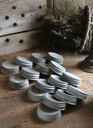 Lot of 16 Old Vintage ZINC Porcelain Lined Mason Jar Lids Small Mouth