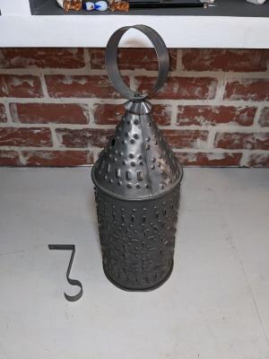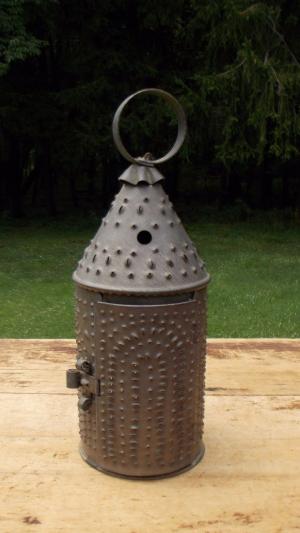 Vintage Primitive Early Style Lighting Punched Tin Taper Candle Lantern