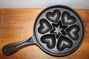 Heart Star Pattern Handled Gem Muffin Pan Cast Iron Vintage Antique Unknown Mfg.