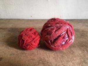 Set Of 2 Antique Handmade Red & Black Calico Rag Balls Textile AAFA #2