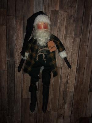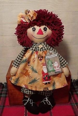 Primitive Handmade CHRISTMAS RAGGEDY ANN DOLL SANTA & Reindeer Dress Folk Art