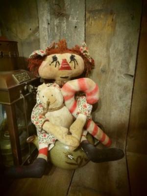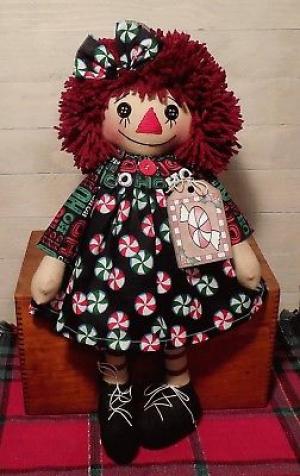 Primitive Handmade CHRISTMAS RAGGEDY ANN DOLL PEPPERMINT CANDY Dress Folk Art