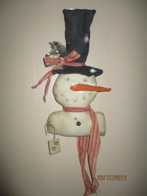 Primitive Grungy Snowman Door Greeter Hanger Christmas Holiday Gift