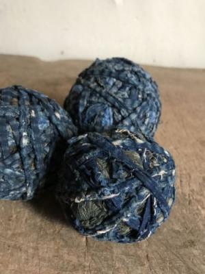 BEST Set Of 3 Large Indigo Blue Calico Rag Rug Balls Handmade Textile AAFA