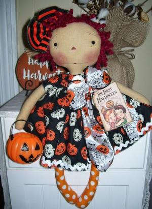 PRIMITIVE RAGGEDY ANN DOLL~PUMPKIN HALLOWEEN ANNIE~