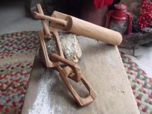 Gorgeous Primitive Vintage Hand Carved Wood Chain Americana Folk Art Whimsy