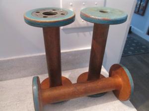 3 Large Old Wooden Bobbins Spools old blue paint Great Look aafa Primitive