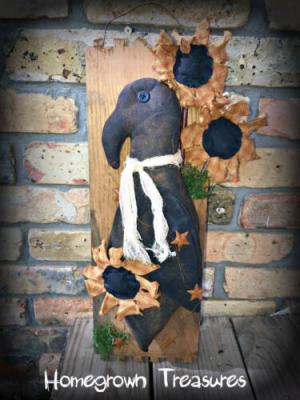 Primitive Crow with Sunflowers on Old Board Wall Hanger!!! One of a Kind!!