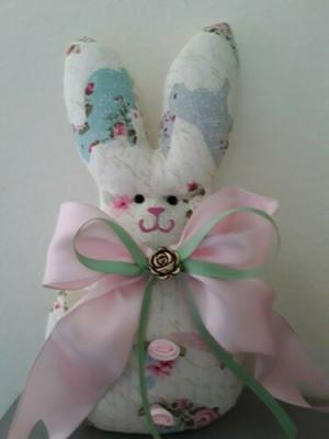 SHABBY PINK ROSES & BUNNIES HAPPY SPRING EASTER BUNNY RABBIT ORNAMENT