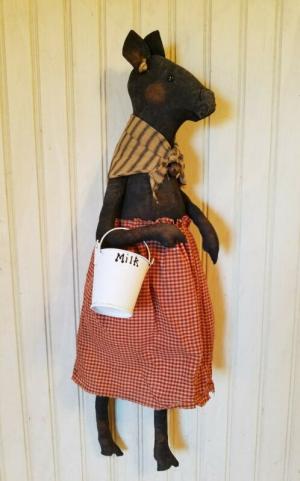 Primitive Grungy Mrs. Bovine Black Cow Doll & Her Milk Pail