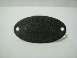 Antique Fin De Cycle Rack Co Bicycle Badge Early Brass Advertising Plaque Emblem