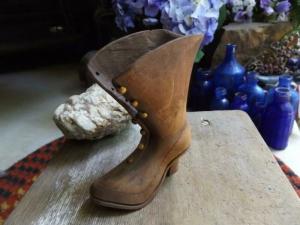Small Primitive Vintage Hand Made Wood Folk Art Ladies Boot Signed JAF 87