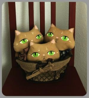 Primitive Doll, Set of 3 Cats, Ornie, Tuck, Kittens, Cushion Doll, Folk Art Cat