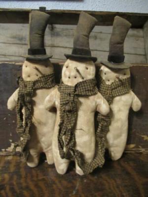Primitive Snowmen Set of 3 Christmas Thanksgiving (A) Grunged