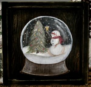 *~*PRIMITIVE*~* HP FOLK ART SNOW GLOBE *~* SNOWMAN *~* WINTER *~* SM. DOOR PANEL