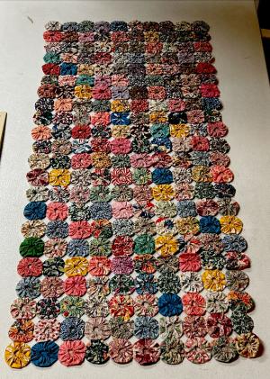 Old 37 in yo yo May runner Size Early 1900s feed sack fabric